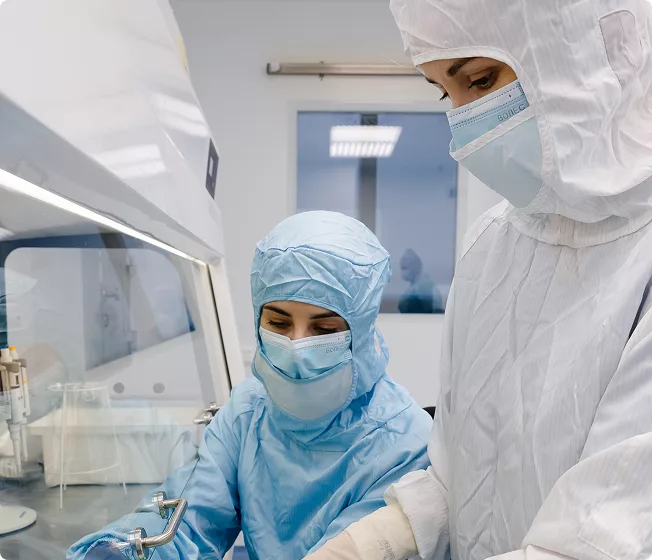 The 1,600 sq ft GMP Biotechnology Laboratory is equipped with five isolated GMP Grade B clean rooms, each with Grade A biological safety cabinets, and features continuous environmental monitoring for sterility, pressure, temperature, humidity, and airborne particles. Every stage of production undergoes rigorous equipment qualification, validation, and verification, supported by a certified quality management system. Personnel receive continuous training and monitoring to ensure strict adherence to hygiene, sterilization, and cleanroom protocols. All stem cell preparations are manufactured in full compliance with GMP and European Pharmacopeia standards for clinical use.
